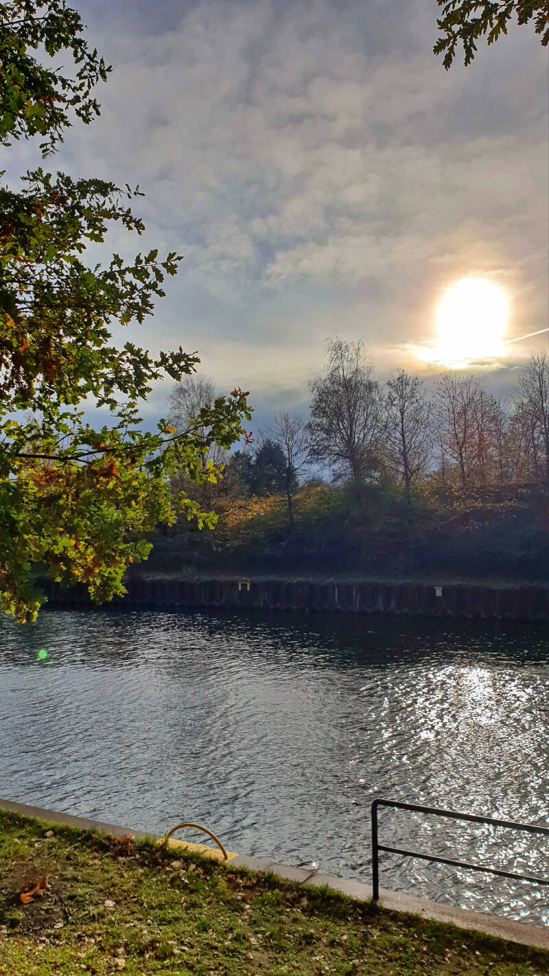 Unser Rückweg verlief am Rhein-Herne-Kanal entlang. Hierbei testeten wir auch - nach jahrelanger Sperrung - den Emscherweg aus. Mit dem Wetter hatten wir Glück. Es war zwar zugezogen und windig, aber es blieb trocken.