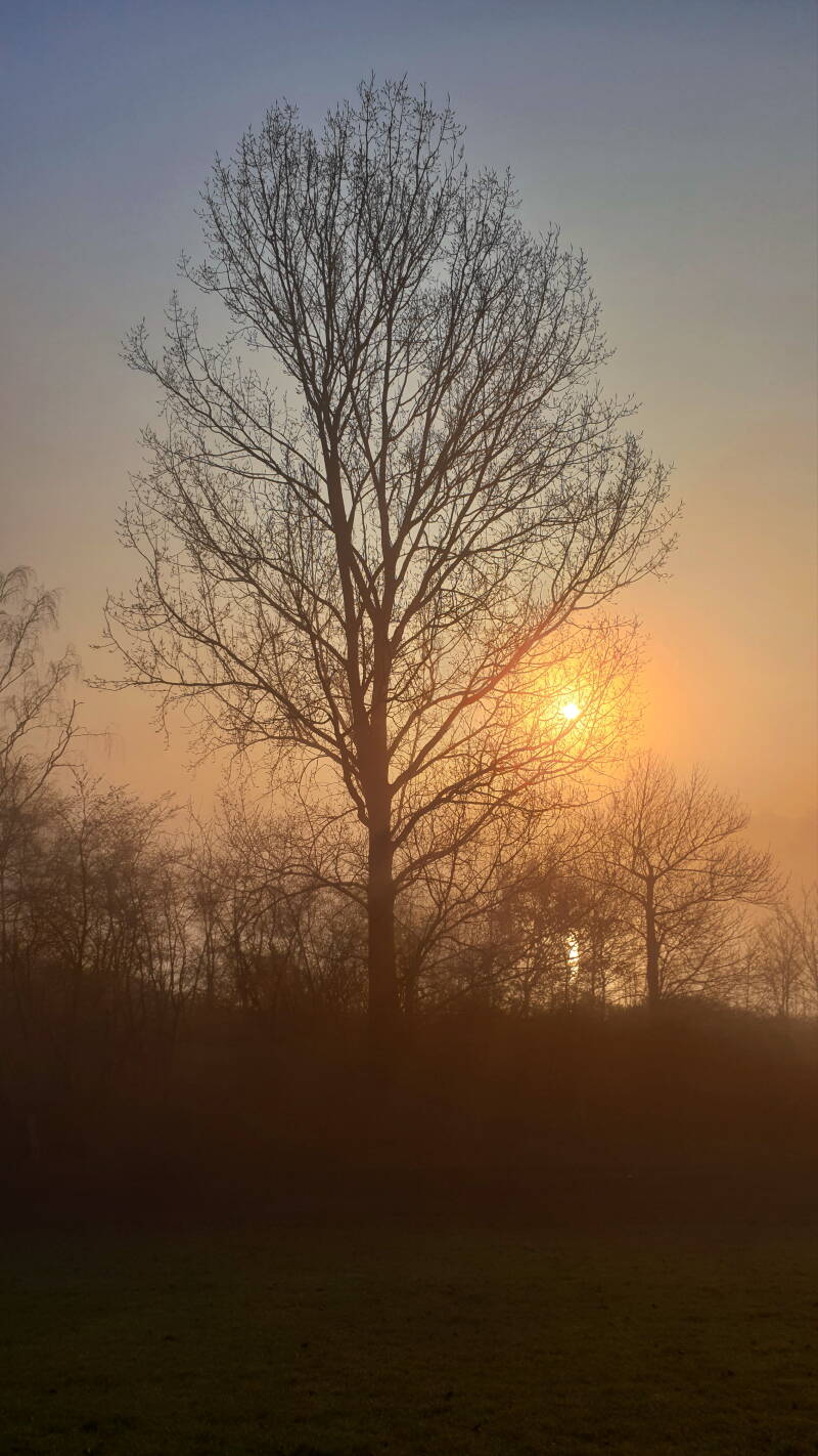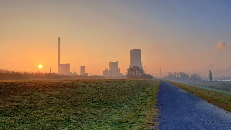 Frühdunst und ein wunderschöner Sonnenaufgang begleiteten uns die ersten Kilometer bis zur Emschermündung. Hinter Eppinghoven verliert man den Rhein mal aus den Augen, hier geht es auch über ein recht enges Teilstück direkt am Kraftwerk Voerde vorbei.