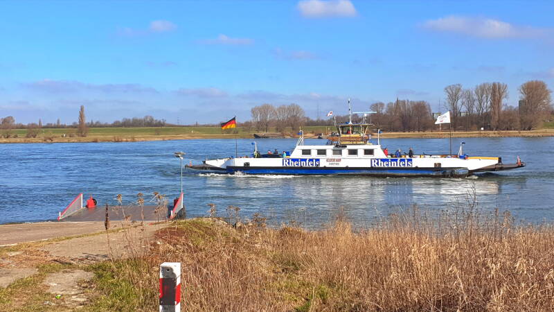 Überwiegend dem Deich folgend, geht es nun in südliche Richtung über Büderich, Wallach und Ossenberg wieder zurück, bis man nach Orsoy gelangt und als Abschluss dieser 54 km langen Tour mit der Rheinfähre wieder nach Walsum auf die andere Rheinseite zurückkehrt.