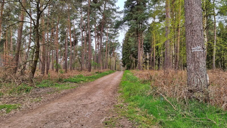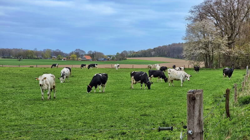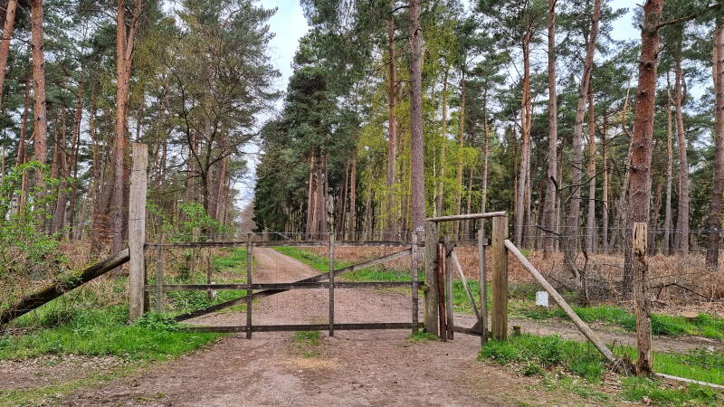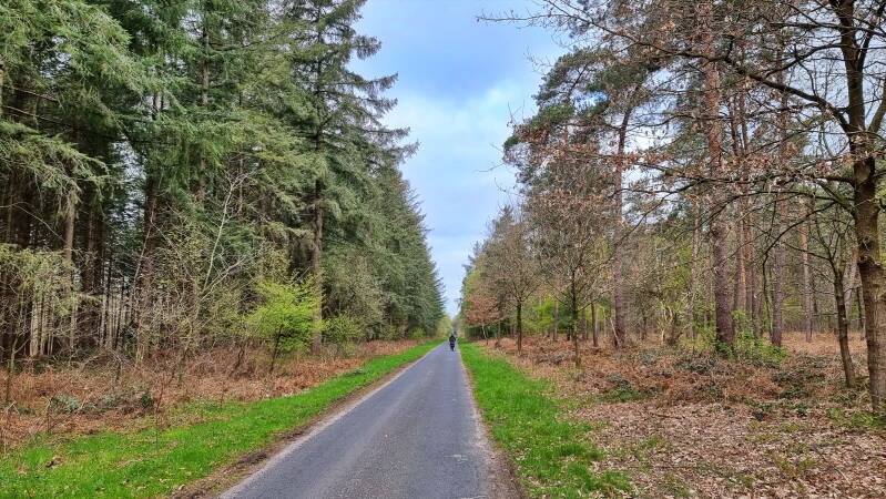 Am westlichen Ende des Weges findet der Wald ein abruptes Ende, und man kann plötzlich über freies Feld weit in die Niederlande hineinblicken. Hier fuhren wir nun ein Stück unmittelbar an der Grenze entlang, um etwa zwei Kilometer später wieder rechts in den Reichswald abzubiegen.