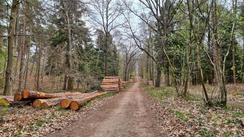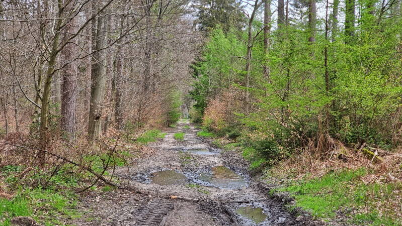 Auf dem Kartenspielerweg merkt man das besonders gut, führt der doch satte neuneinhalb Kilometer schnurgerade durch das Waldgebiet hindurch. Hier hatten wir heute auch das Glück, dass eine eindrucksvolle Rehherde direkt vor uns die Seite wechselte.
