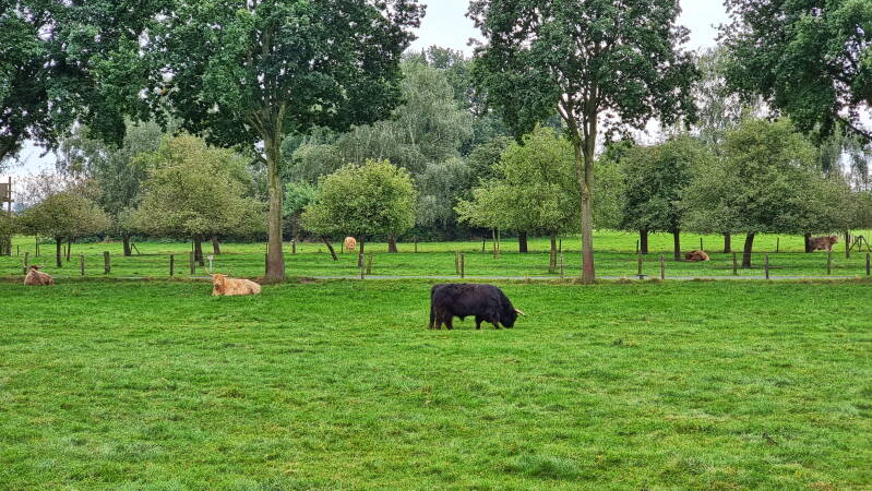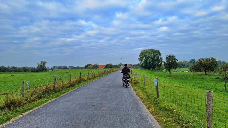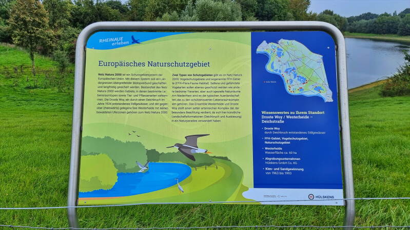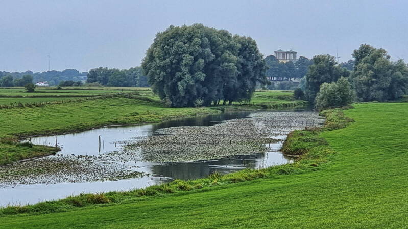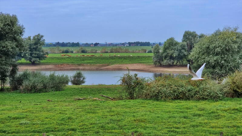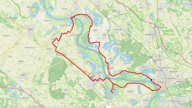 Vom Weseler Auesee, genau dort wo auch der "Hohe Mark Steig" beginnt, führt die Tour überwiegend der Deichkrone folgend nordwärts. An Bislich vorbei und an Auen und Altrheinarmen entlang geht es so bis Rees. Dort ließen wir uns dann mit dem "Rääße Pöntje", einer kleinen Fähre für Fußgänger und Radfahrer, an das andere Rheinufer bringen.