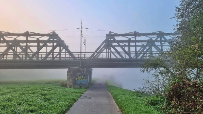 Unsere heutige Etappe auf dem Ruhrtalradweg führte durch vertrautes Gelände, auch wenn während der ersten Kilometer von Hattingen aus dichter Nebel herrschte. Der lichtete sich erst bei Dahlhausen.