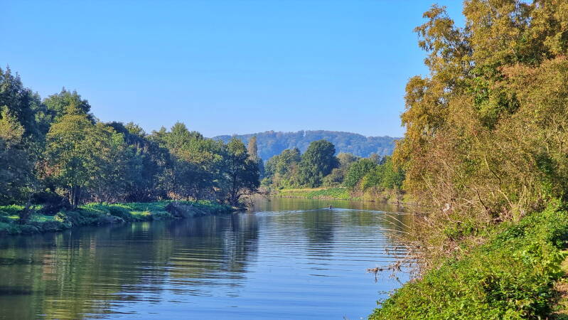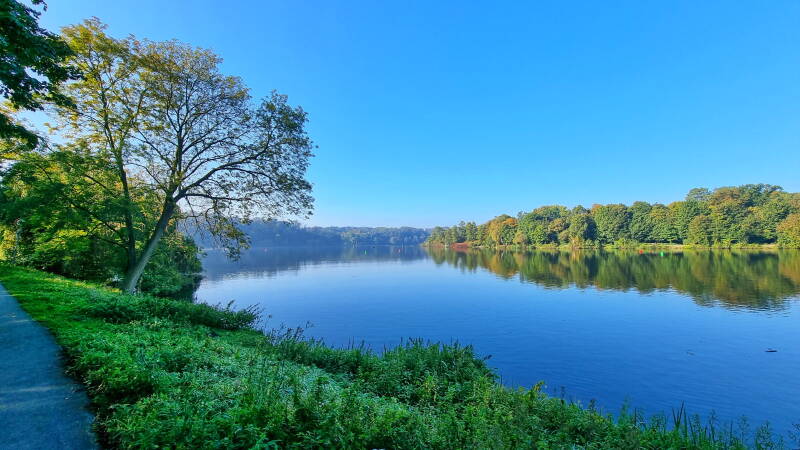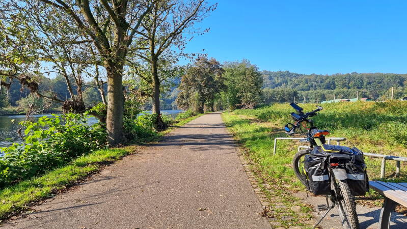 Nach vier weiteren Kilometern kamen wir in Werden an und wechselten dort erneut die Ruhrseite. Über einen erneut als Leinpfad bezeichneten Radweg konnten wir nun die letzten sechs Kilometer bis Kettwig vor der Brücke radeln, wo unsere heutige Tour endete.