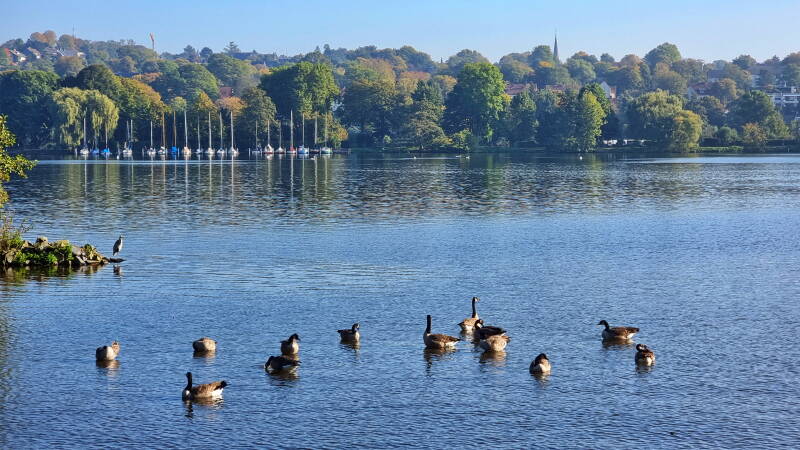 An der "Zornigen Ameise" vorbei gelangten wir in die Heisinger Ruhrauen und anschließend zur "Roten Mühle". Dann, hinter der alten Eisenbahnbrücke von Kupferdreh, erwartete uns der malerische Baldeneysee.