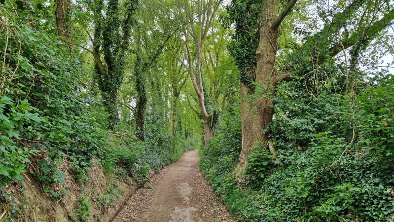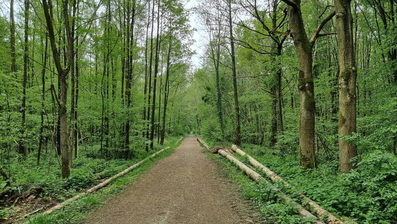 Dessen Kammpfaden bin ich seinerzeit zu Fuß gefolgt. Nun, mit den EMTB´s, war es sinnvoller, den mal westlich, mal östlich verlaufenden und besser ausgebauten Parallelweg zu nehmen. So fuhren wir dann in nördliche Richtung am Windberg, Hahnenberg und Saelhuyser Berg vorbei und schließlich um den Schardenberg herum.