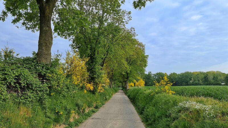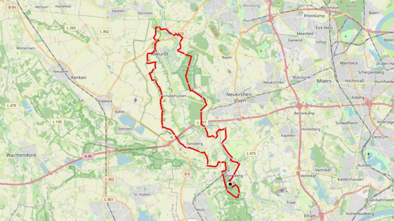 Die Rückfahrt verläuft zunächst ein kleines Stück an der Nenneper Fleuth vorbei, über Wirtschaftswege bis in den Staatsforst Rheurdt, der anschließend auf seiner gesamten Länge durchquert wird. Weitere schöne Wirtschaftswege führen hiernach schließlich zum Hülser Berg zurück.