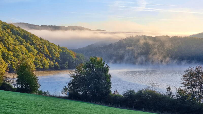 Selbst wenn man wie ich sechs Mal in einem Jahr am Rursee war, glaube ich, dennoch nie genug bekommen zu können von dieser wundervollen Gegend. So wurde der diesjährige Abschiedsbesuch zu einer tollen Fahrradrunde um den Obersee herum, den großen Rursee selbst und an der Urft entlang bis zur Staumauer.